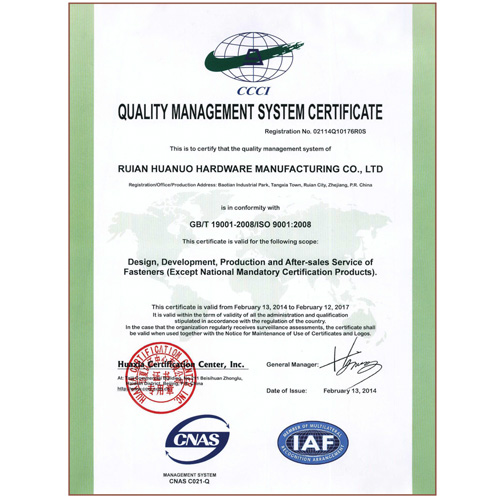 質量管理體系認證證書